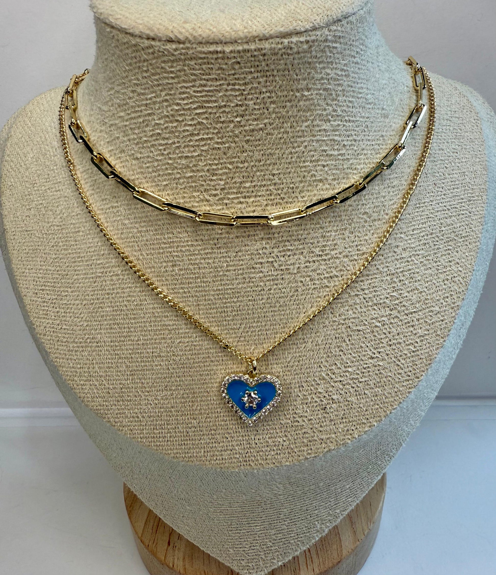 Diseño doble en oro laminado 14k con perlitas y dije de ojo protector. Elegante, moderna y perfecta para toda ocasión.